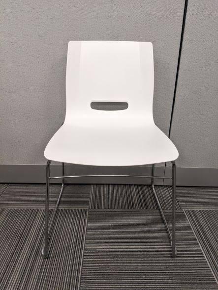 The Allermuir Casper Guest Chair offers a clean, modern aesthetic with the durability and versatility needed for today’s commercial spaces. Featuring a white molded polypropylene shell with a distinctive back cutout and a polished chrome sled base, the Casper is lightweight, stackable, and ideal for guest seating, cafés, collaborative spaces, and training rooms.