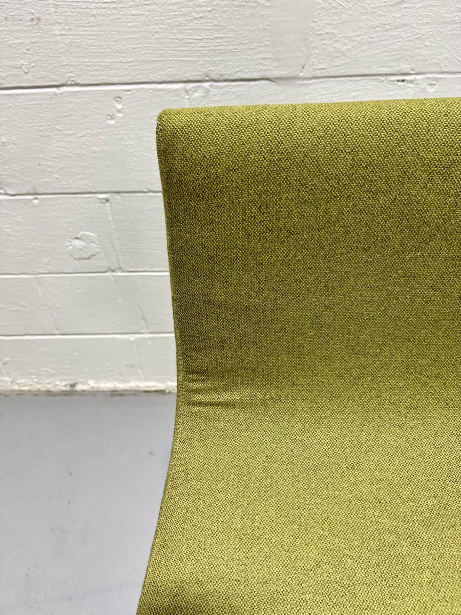 Sleek Andreu World Lineal Comfort Stool in green upholstery with chrome sled base. Sustainable, ergonomic, and perfect for modern spaces.