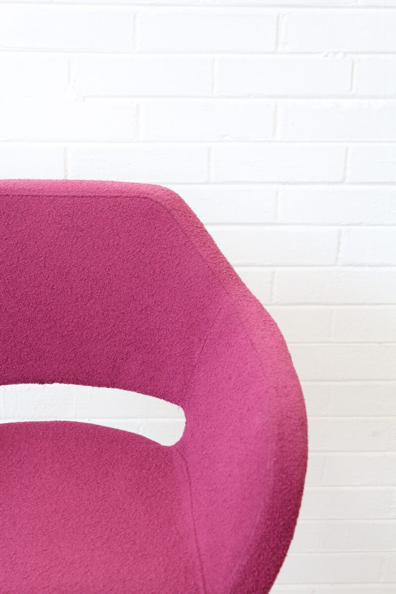 Make a bold statement with the Beaufurn Larsen Barstool, designed with both comfort and modern flair in mind. This pre-owned stool features a vibrant magenta upholstered shell seat with an integrated back cutout for a breathable and supportive sitting experience. The chrome sled base adds a sleek industrial contrast, making it perfect for office break areas, collaborative spaces, or stylish home bars. The contoured back and sturdy frame blend form and function, providing both visual appeal and everyday comfort.