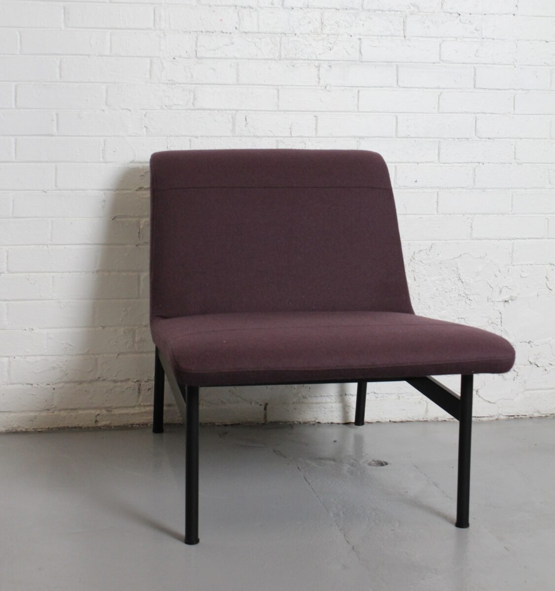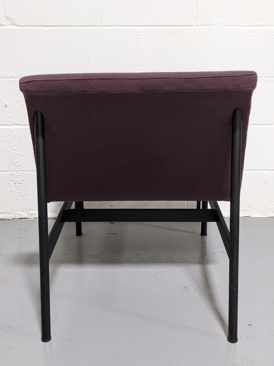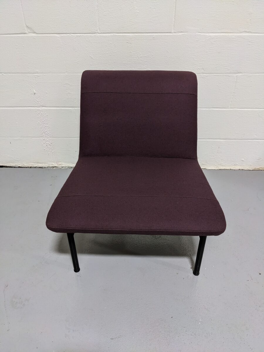 Elevate your lounge or waiting area with this Bernhardt Design Charles Pollock CP2 Chair. Upholstered in a rich plum fabric, this armless lounge chair combines modern minimalism with timeless comfort. Designed by the legendary Charles Pollock, the CP2 series embodies sleek architectural lines supported by a durable black metal base. Whether used in an office lobby, hospitality setting, or modern living space, this chair offers a sophisticated seating solution with a touch of design pedigree.