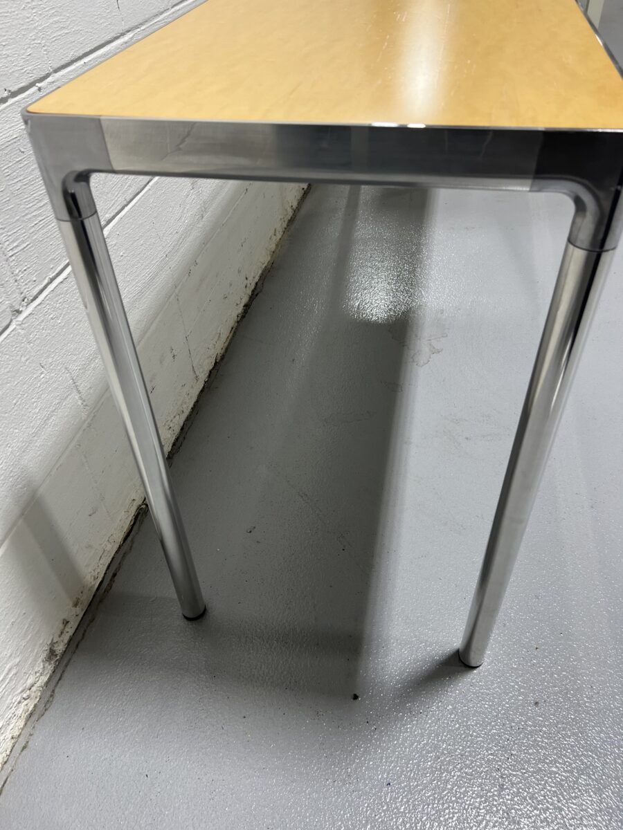 Bernhardt rectangular training table with light wood laminate top and chrome legs. Ideal for meeting rooms, training spaces, or flexible workstations.