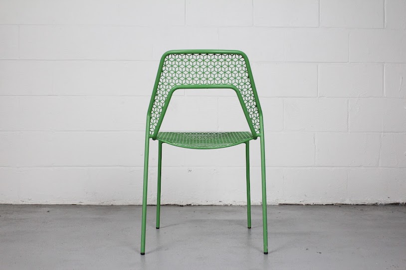 Add a bold pop of color with this used Bludot Hot Mesh Chair in green. Featuring a modern geometric steel design, it’s lightweight, stackable, and perfect for indoor or outdoor use in cafes, offices, or creative spaces.