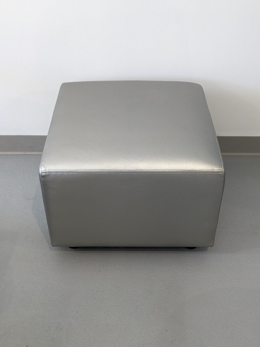 Silver vinyl Steelcase Coalesse Await Ottoman – perfect for lounge or office seating. Stylish, compact, and gently used.