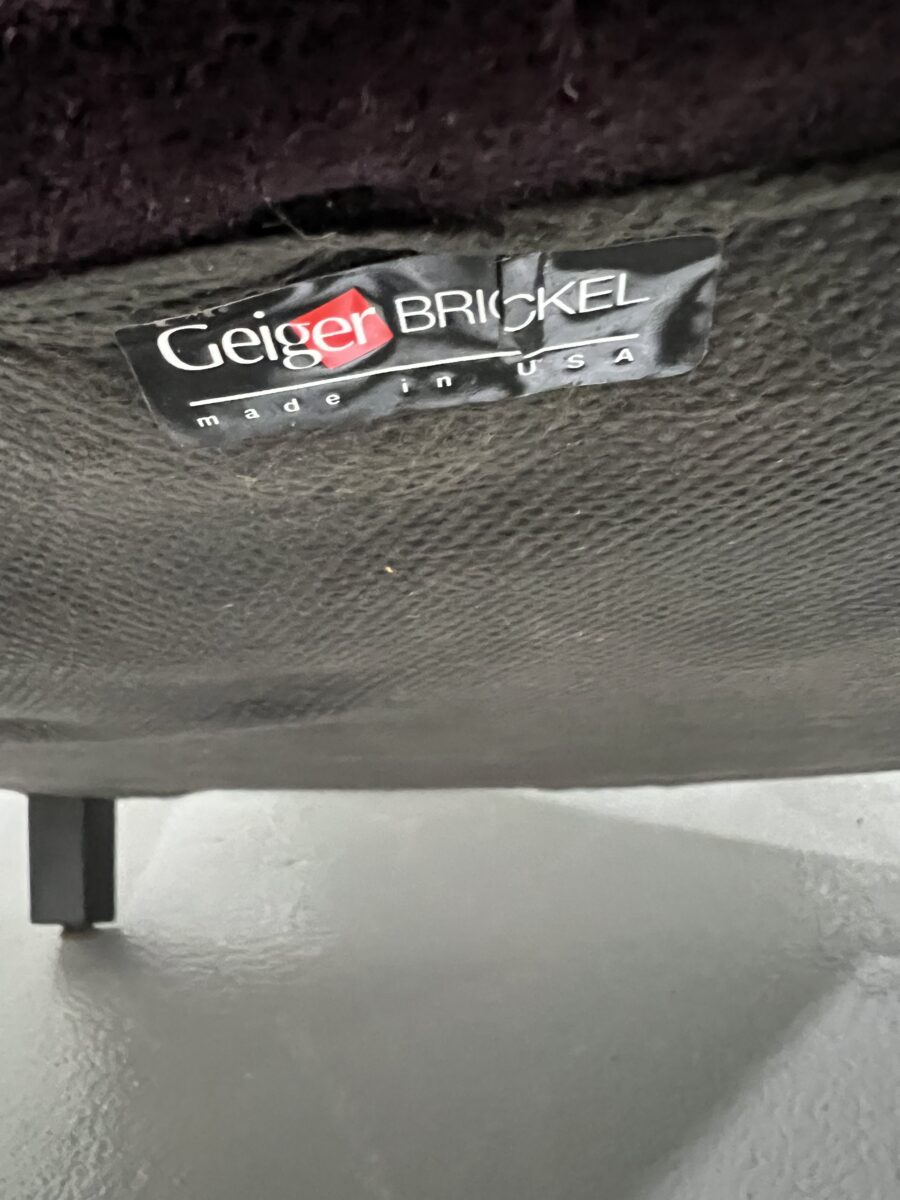 Elevate your lounge space with this stunning Geiger Brickel armchair, upholstered in a rich, deep purple velvet that adds elegance and warmth to any room. The structured silhouette features gently flared arms, a generous seat cushion, and subtle modern lines that blend seamlessly into both professional and residential interiors. This lounge chair is perfect for reception areas, breakout spaces, or home offices in need of a sophisticated statement piece.