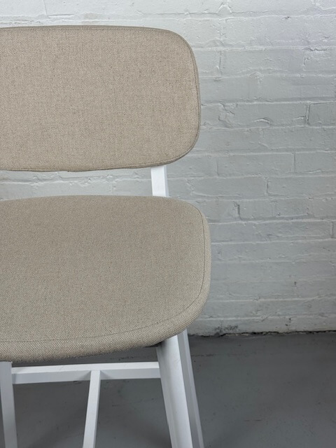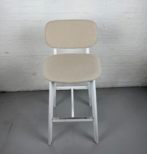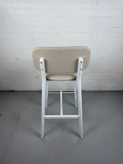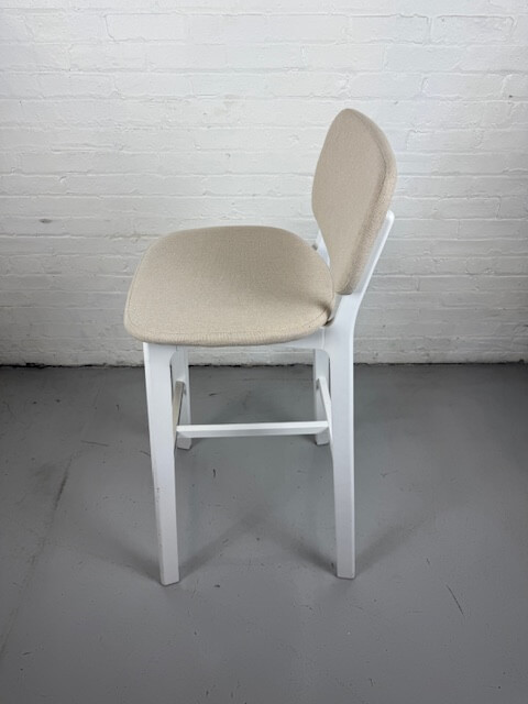 Grand Rapids Chair Company Bar Stool with beige fabric seat and white wood frame, modern, comfortable, and perfect for offices or hospitality spaces.