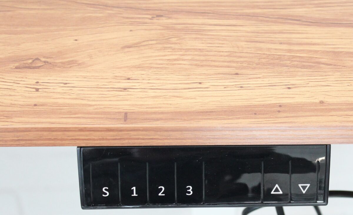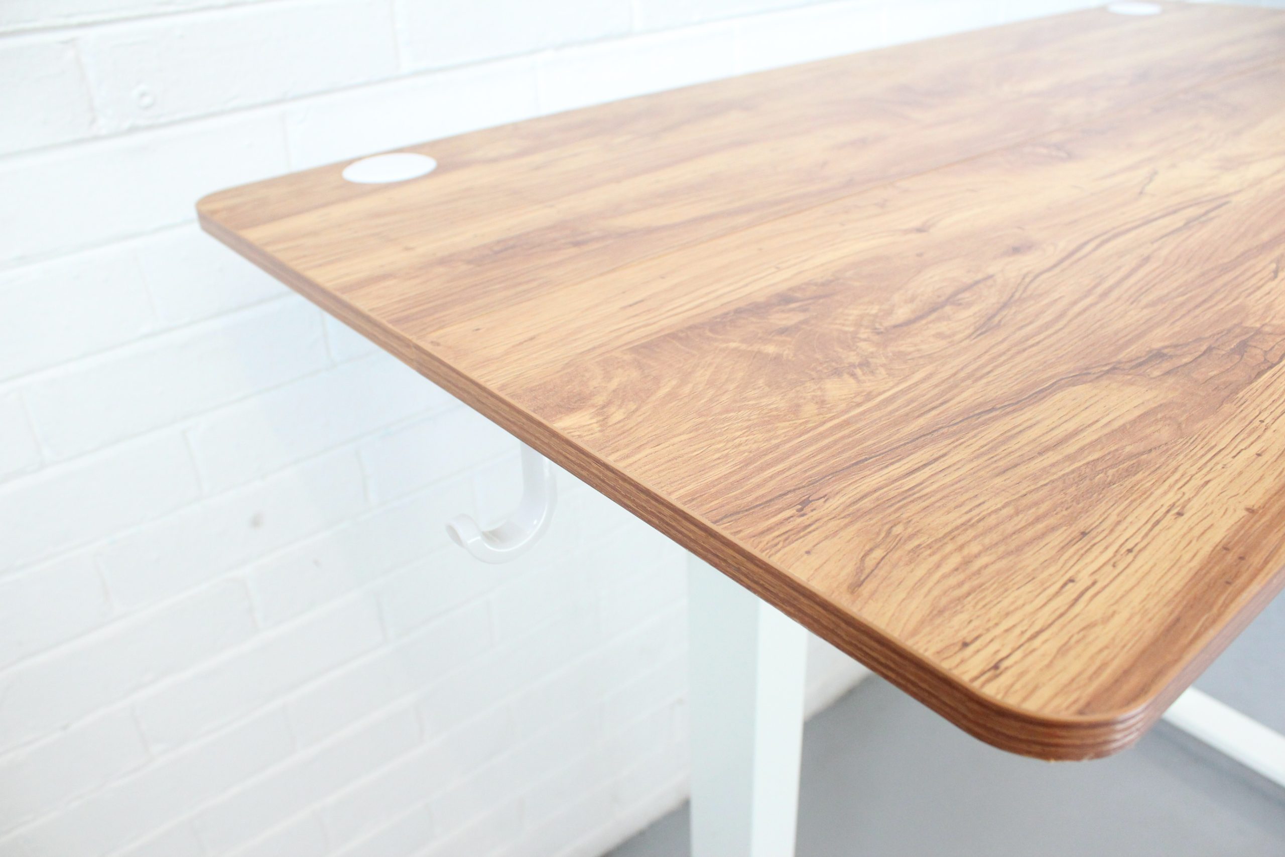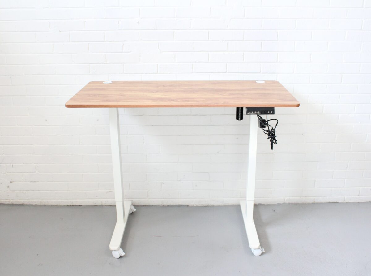 Bring flexibility and style to your office with this Height Adjustable Electric Desk, featuring a rich woodgrain laminate top paired with a crisp white steel frame. With programmable digital controls, you can shift between sitting and standing with the touch of a button—ideal for promoting comfort and productivity throughout the day.