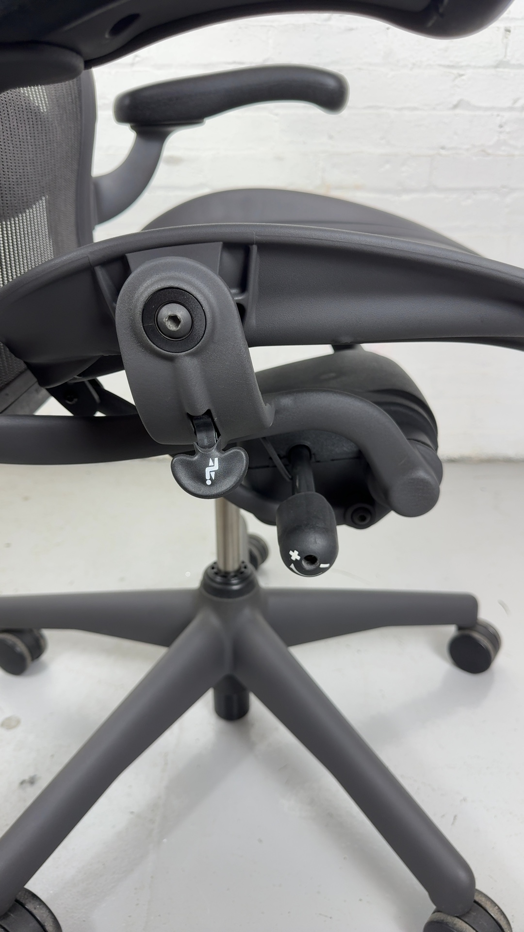 This preowned Aeron features the Graphite finish, fixed-height arms, and standard tilt tension controls for smooth recline. The chair’s intelligent design evenly distributes weight and supports natural movement, reducing fatigue during long hours of sitting.