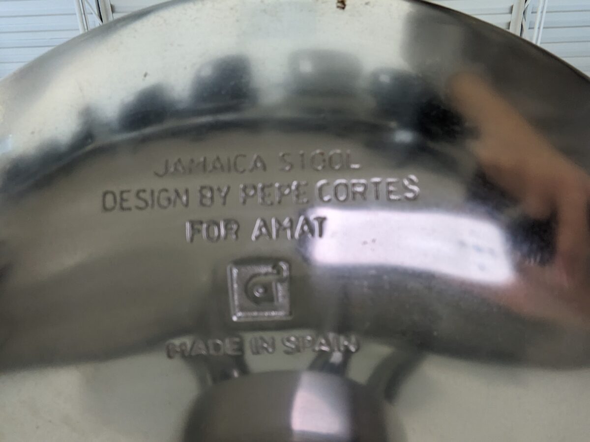 Iconic white and chrome Jamaica Barstool designed by Pepe Cortés for AMAT-3. Stylish, ergonomic, and perfect for modern spaces.