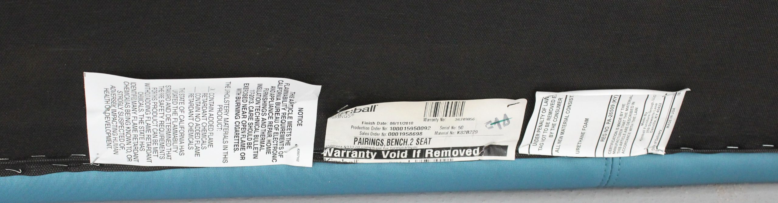 Upgrade your workspace or lounge area with the Kimball International Pairings 2-Seat Bench, finished in a vibrant blue vinyl and supported by sleek, angled metal legs. This contemporary bench offers both style and function with its clean lines and durable upholstery. Ideal for waiting areas, collaborative spaces, or modern office lounges, it comfortably seats two adults and adds a polished, professional look to any environment. As part of Kimball’s high-quality contract furniture line, this pre-owned bench delivers designer-level design at a sustainable price.