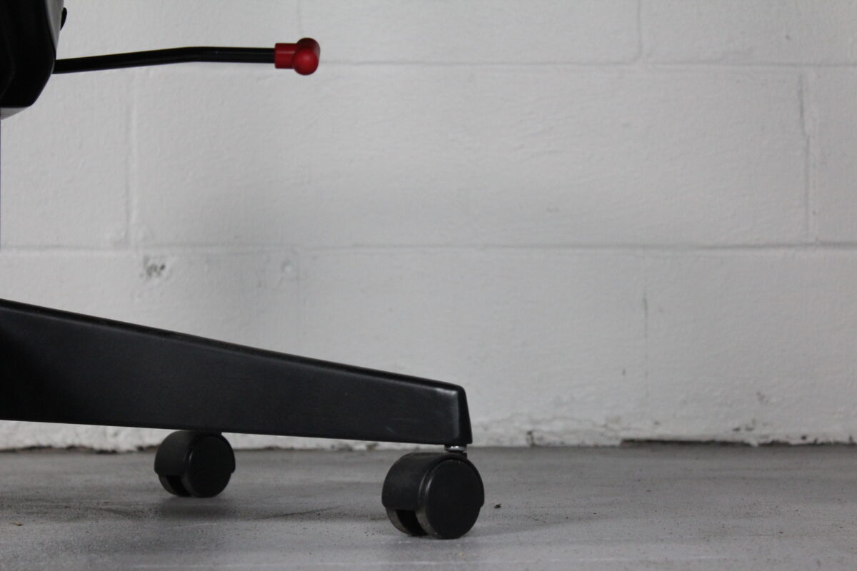 Designed by Richard Sapper for Knoll, this executive office chair combines high-performance ergonomics with a classic silhouette. Upholstered in supple black leather with a sculpted, ribbed backrest and generously cushioned seat, it’s built for comfort through long meetings or workdays.
