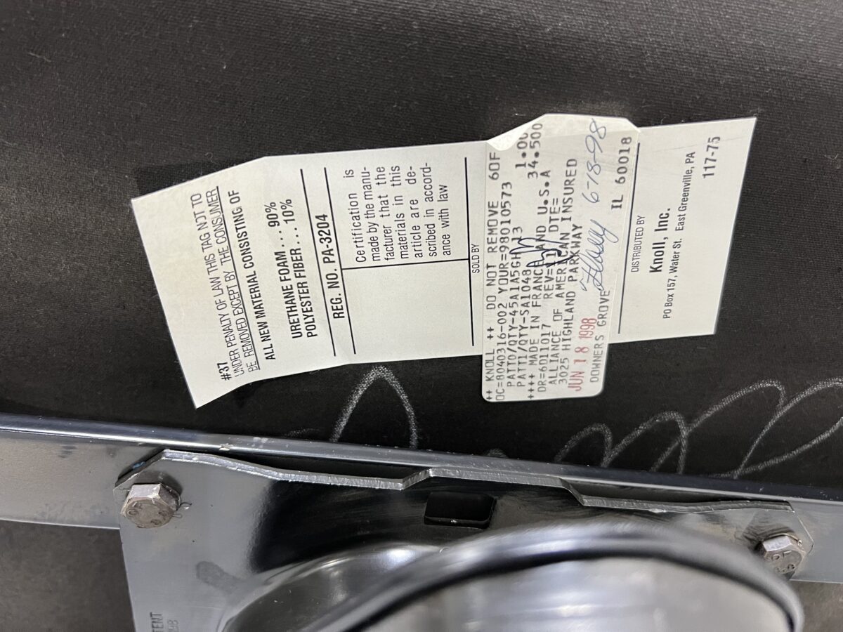 Add timeless design and ergonomic performance to your workspace with this authentic Knoll Sapper Series Management Task Chair, originally designed by Richard Sapper and manufactured in 1989. Featuring a rich brown leather seat with signature horizontal channel stitching, this vintage office chair combines industrial sophistication with superior comfort. The molded black armrests, rolling five-star base, and tilting mechanism deliver both function and flair. Designed for productivity with style, this iconic chair is a sought-after piece for collectors and professionals alike. Some wear on armrests consistent with age.
