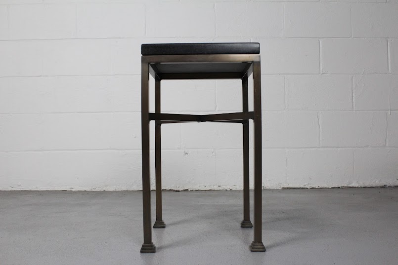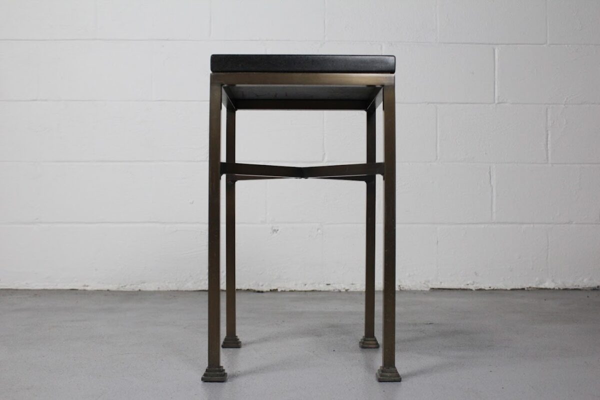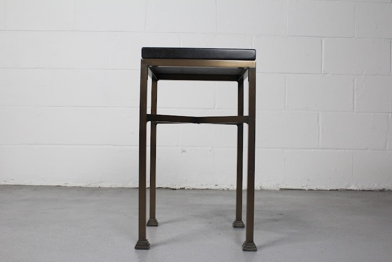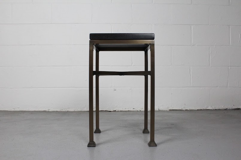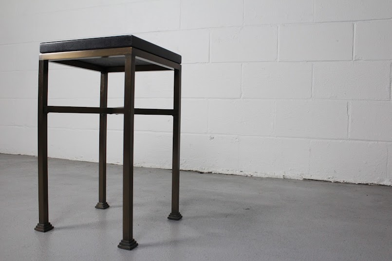 Compact and stylish, this modern industrial end table features a black granite top and bronze-finished metal legs — ideal for urban spaces or chic interiors.