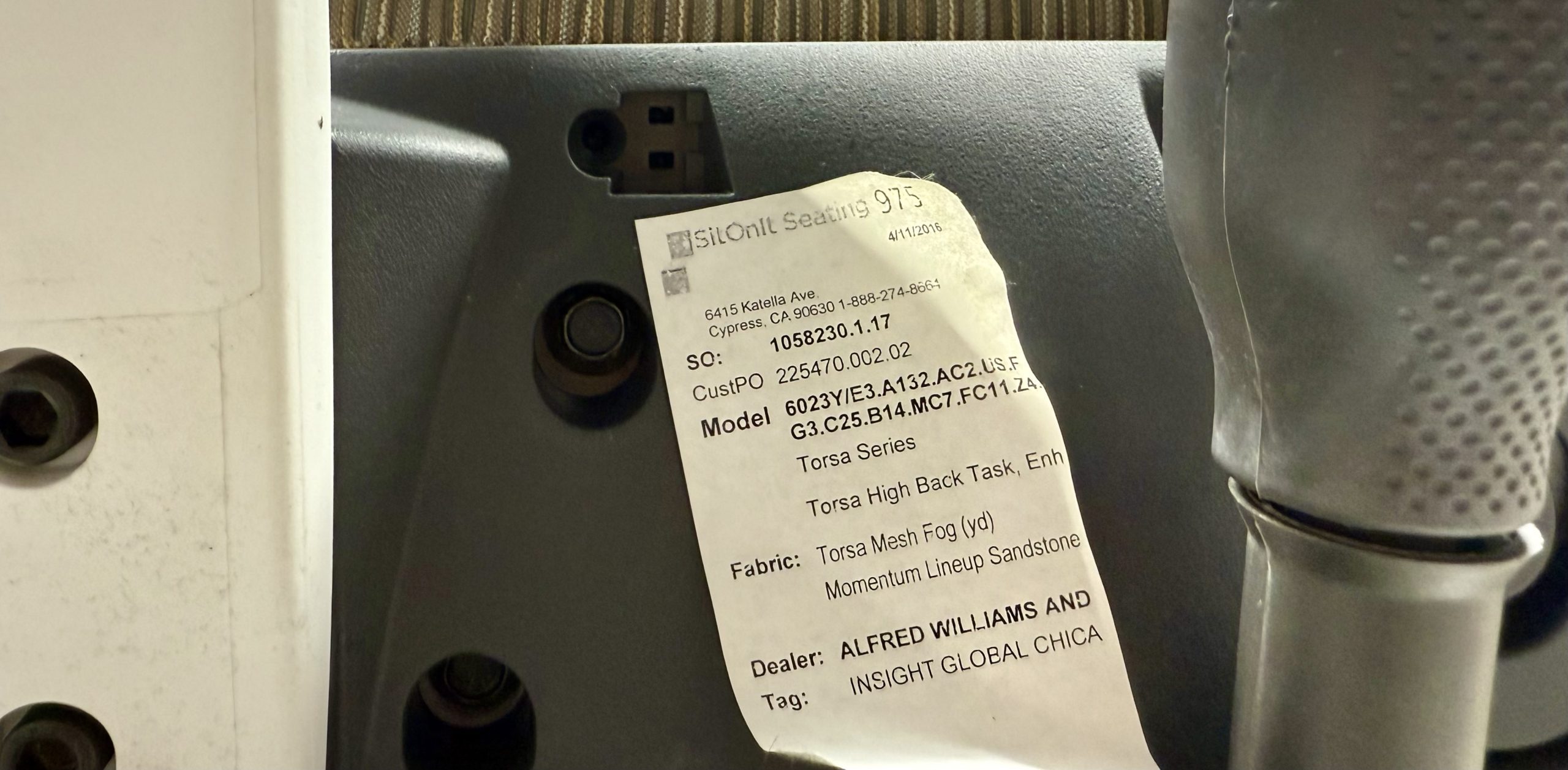 The Torsa Series is renowned for its intuitive adjustments, sleek silhouette, and durable construction, making it an ideal fit for task seating, shared workstations, and contemporary office environments. This model includes enhanced mechanisms (as shown on the label), allowing users to fine-tune recline, seat height, and tension for personalized support.
