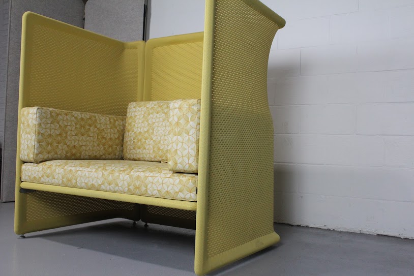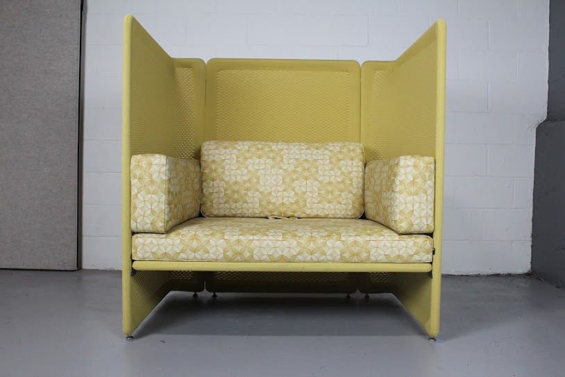 Used Steelcase Coalesse Lagunitas Privacy Lounge with high acoustic panels, soft cushions, and contemporary design — ideal for private workspaces or collaborative areas.
