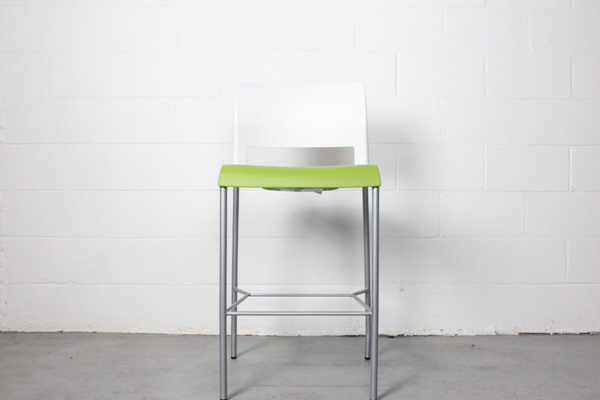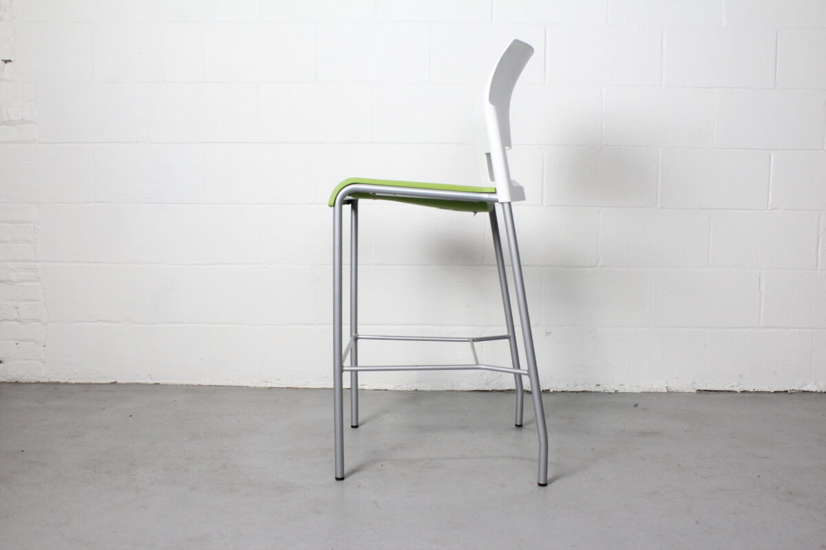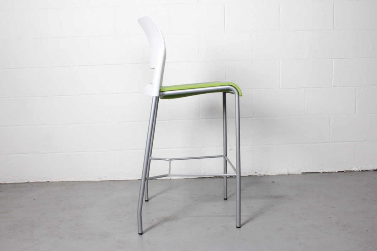 Bring a splash of modern color and ergonomic design to your space with the Steelcase Move Stool. Designed for flexibility and comfort in active environments, this armless stool features a vibrant green seat paired with a clean white back and a sleek silver frame. Its minimalist silhouette and lightweight construction make it ideal for cafés, breakrooms, collaborative areas, and informal meeting spaces.