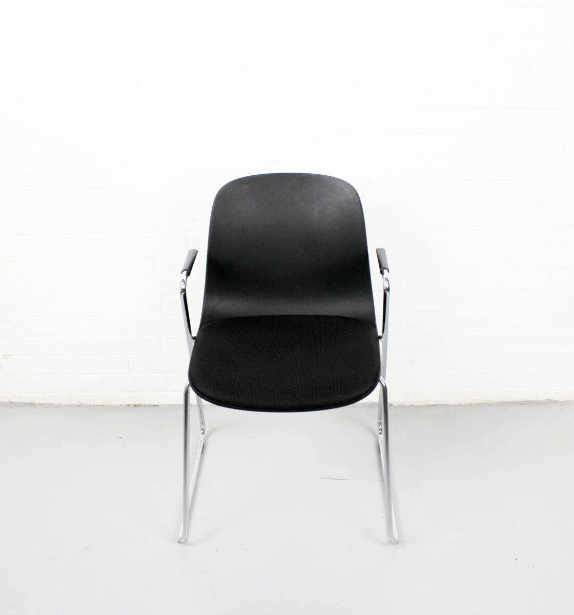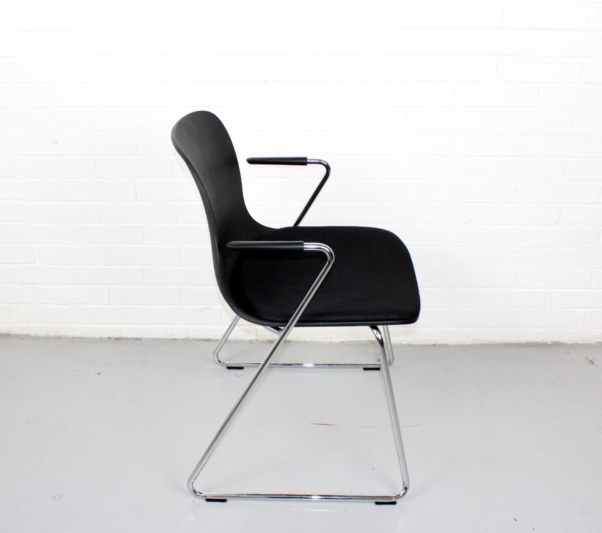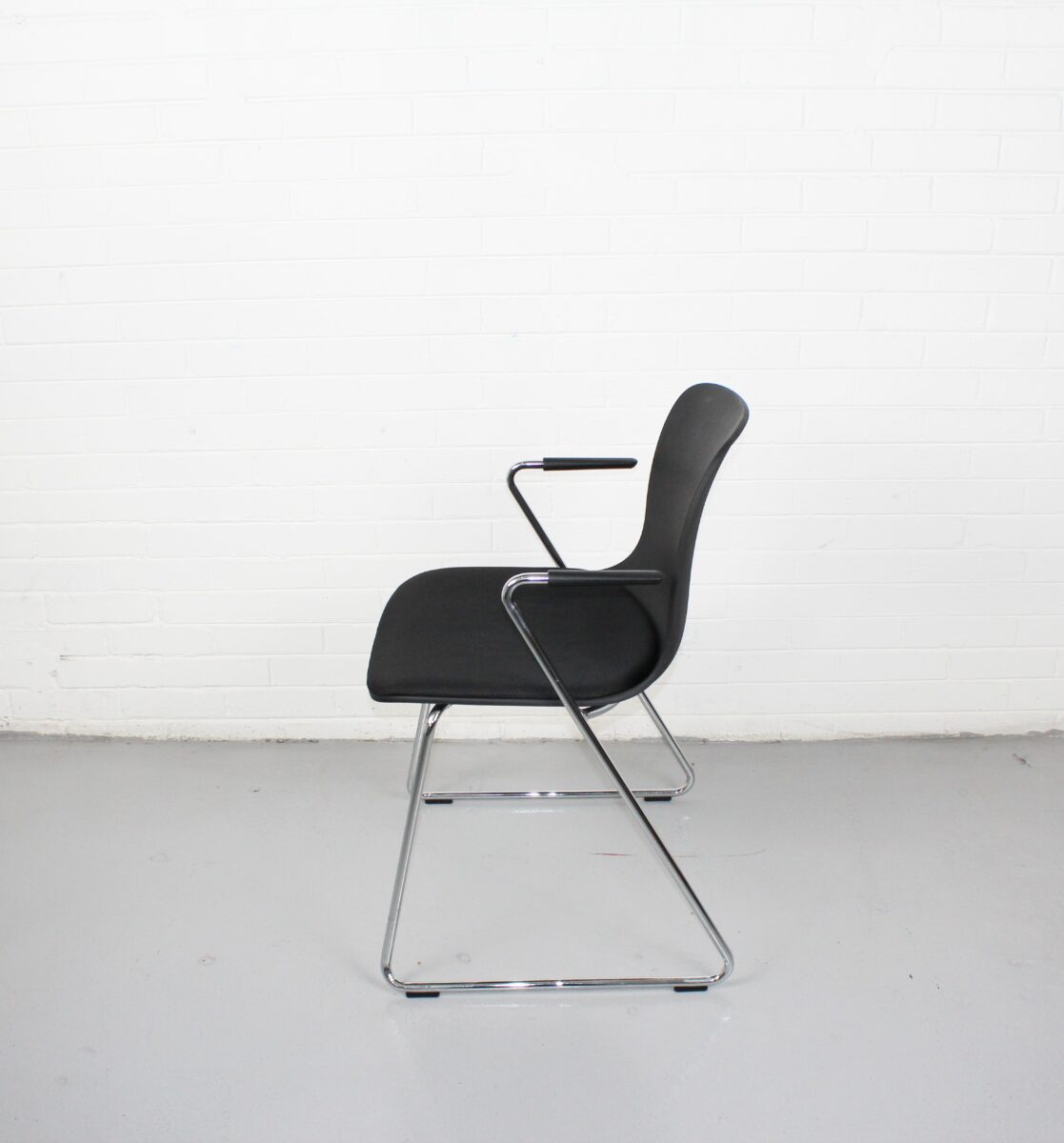 Modern black guest chair from the Stylex Verve Series with chrome sled base and armrests.