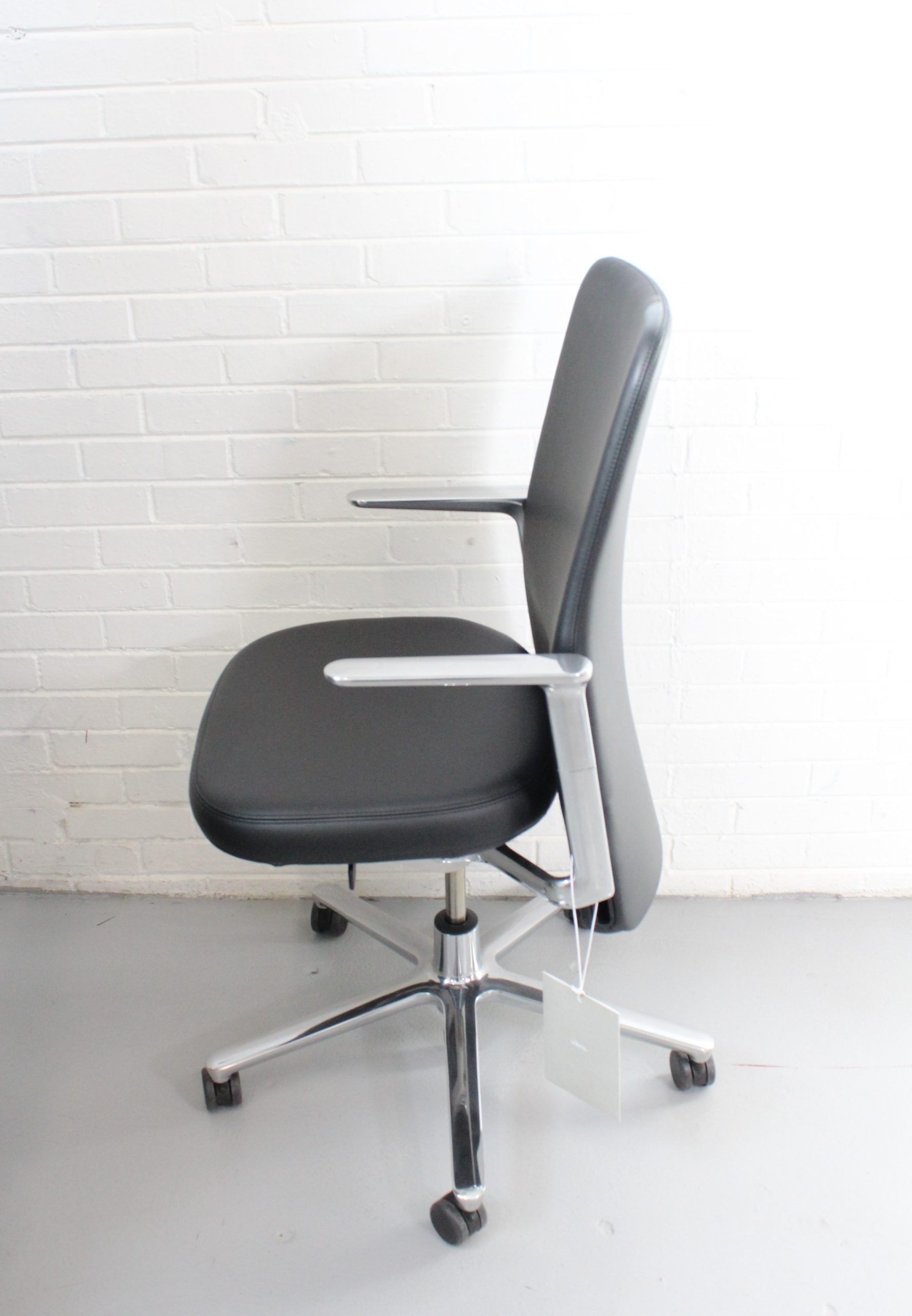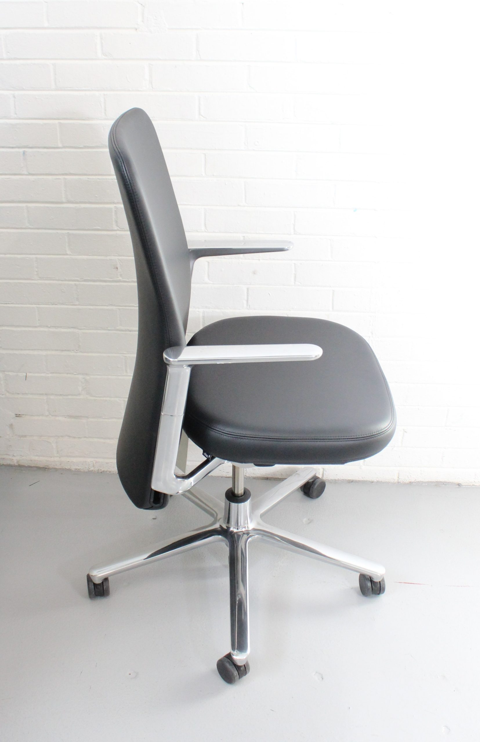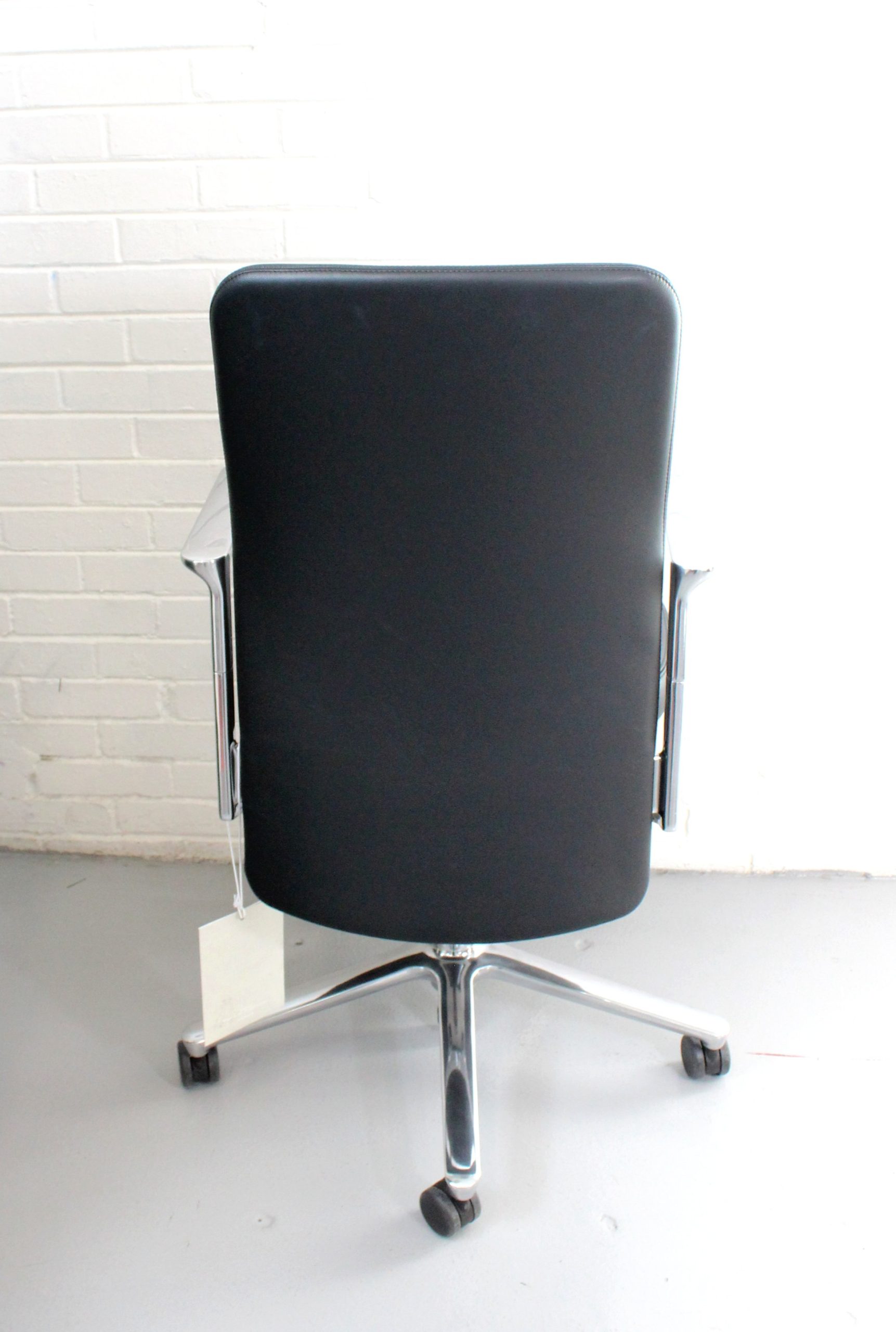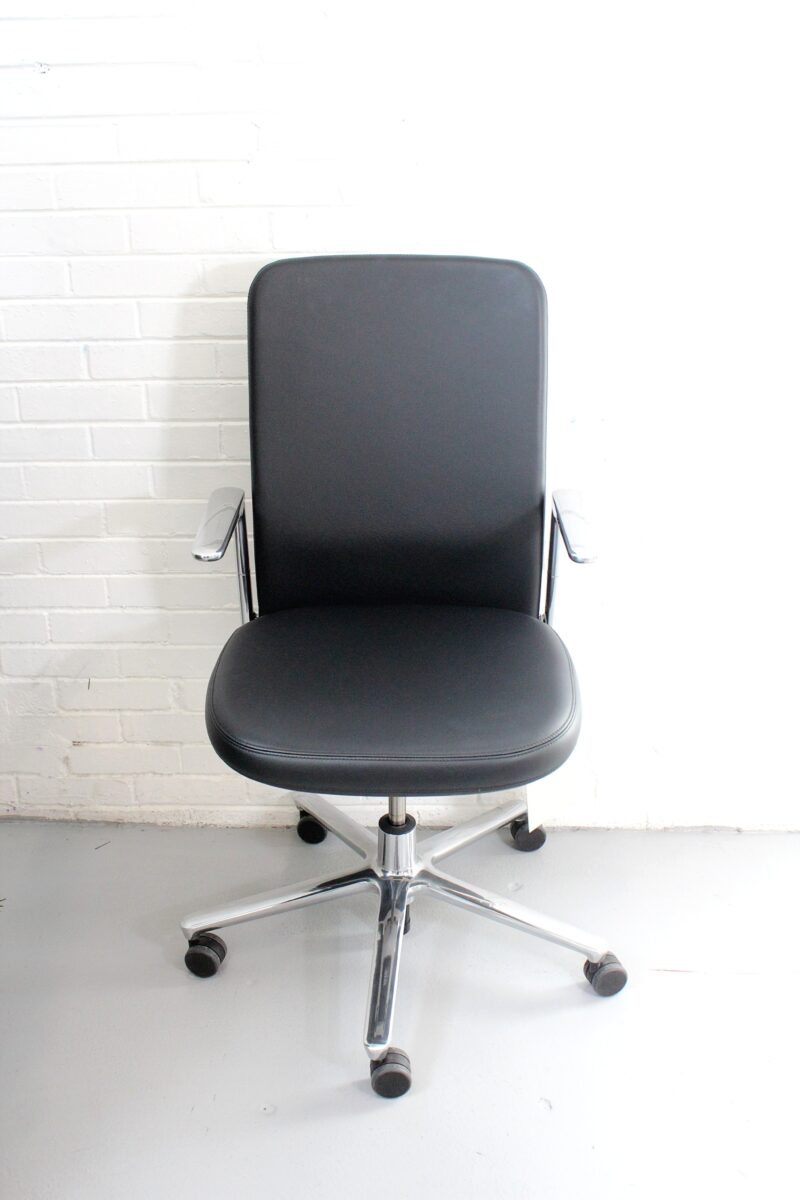 Vitra Pacific executive task chair in black leather with chrome base. Made in Germany. Sleek, ergonomic, and designed for modern office spaces.