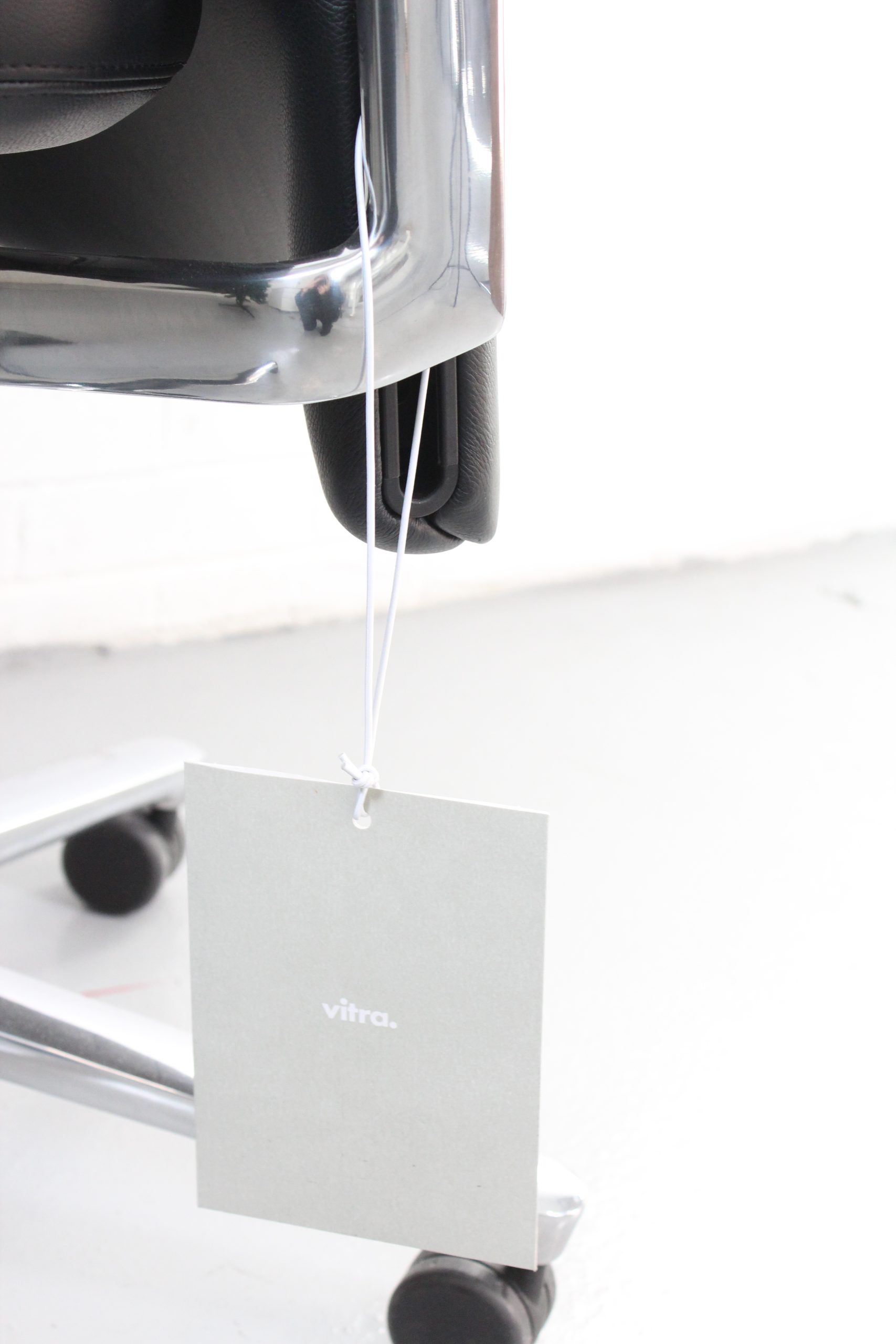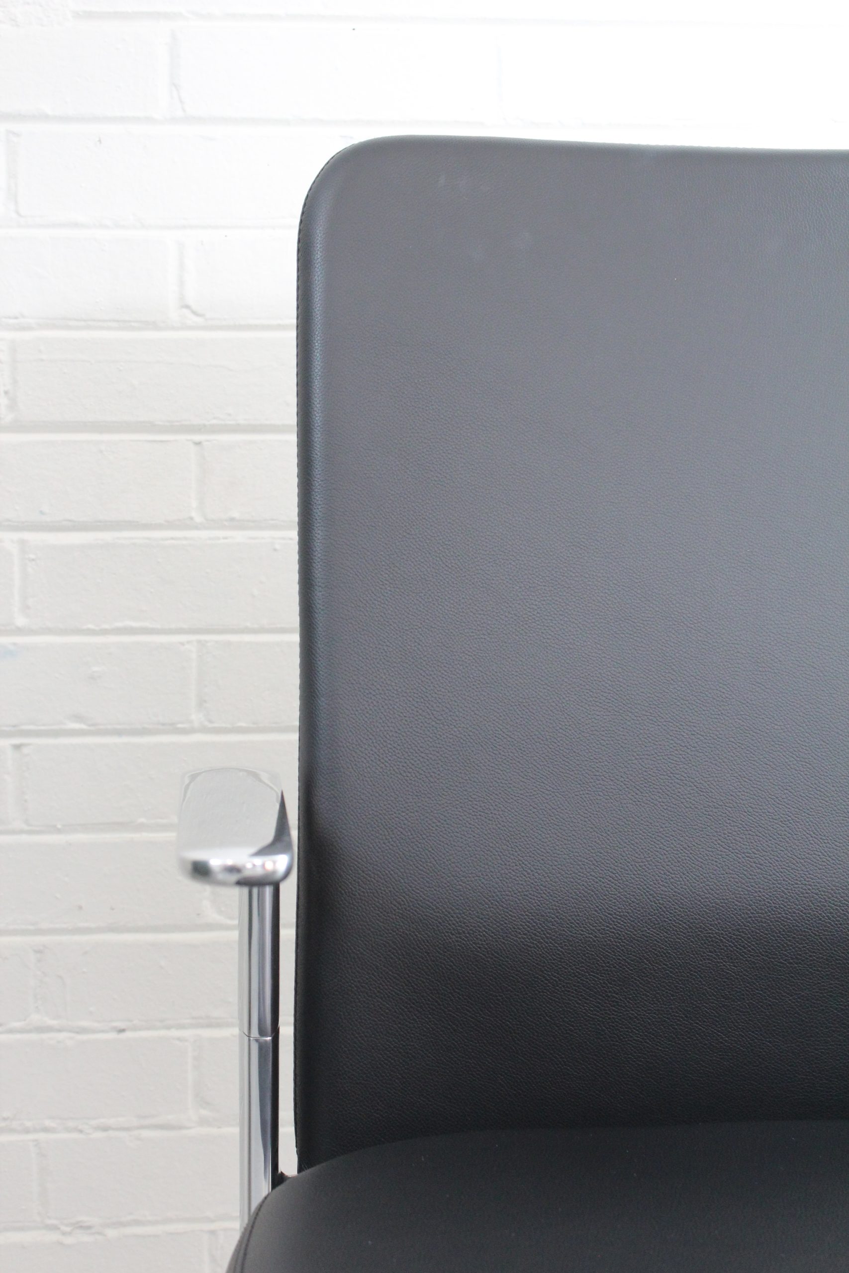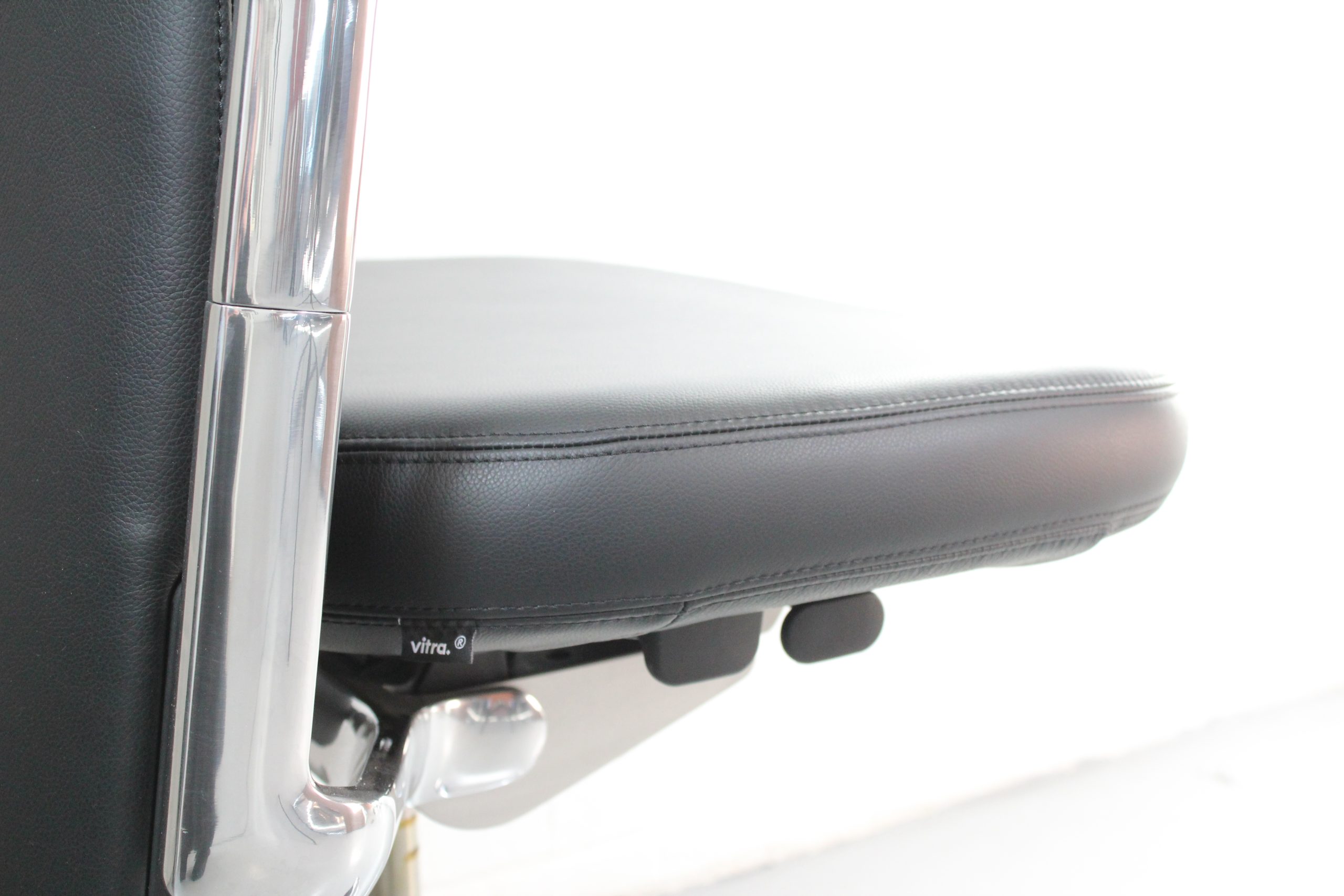 Vitra Pacific executive task chair in black leather with chrome base. Made in Germany. Sleek, ergonomic, and designed for modern office spaces.